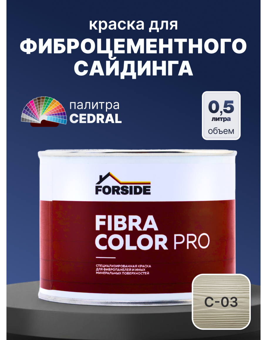 Краска фасадная для фиброцементного сайдинга FORSIDE 0.5л, C-03 Белый песок, FORSIDE