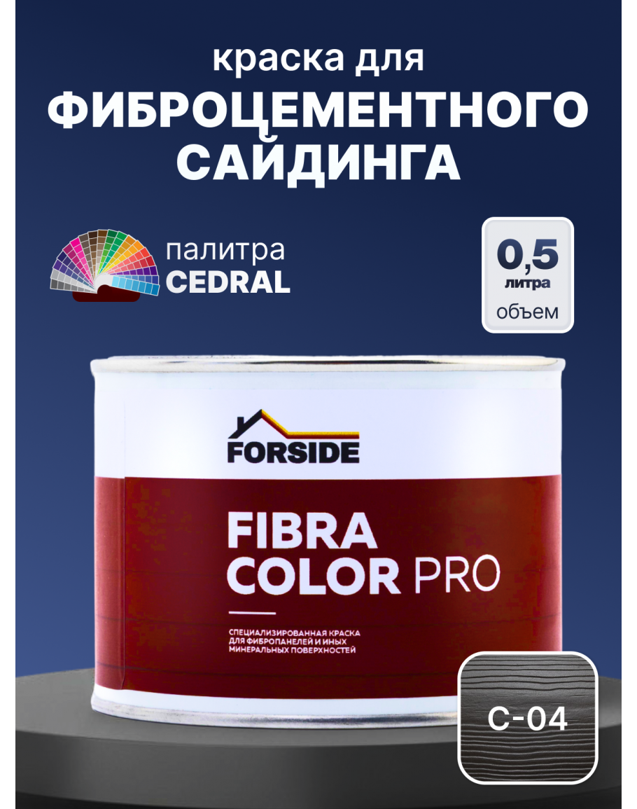 Краска фасадная для фиброцементного сайдинга FORSIDE 0.5л, C-04 Ночной лес, FORSIDE