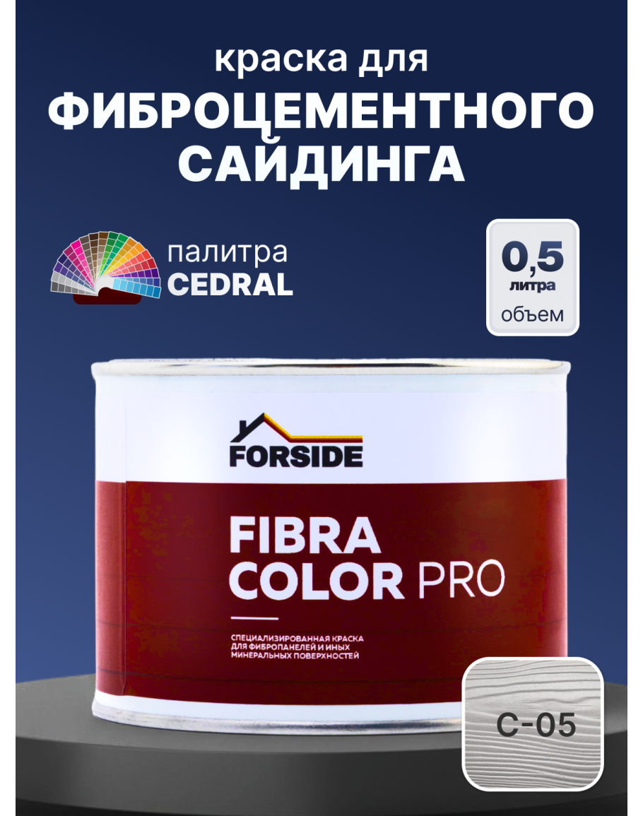 Краска фасадная для фиброцементного сайдинга FORSIDE 0.5л, C-05 Серый минерал, FORSIDE