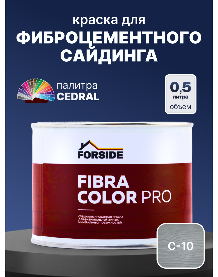 Краска фасадная для фиброцементного сайдинга FORSIDE 0.5л, C-10 Прозрачный океан, FORSIDE