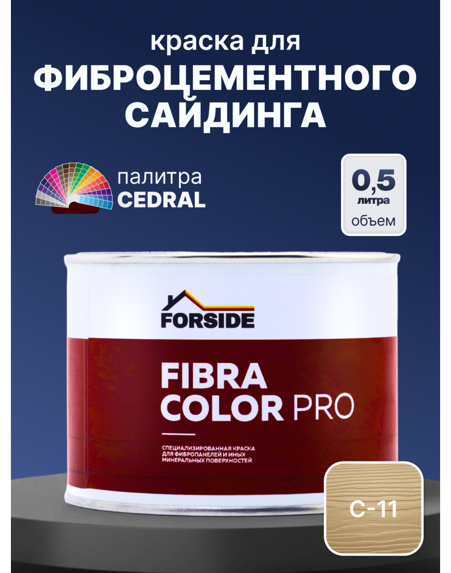 Краска фасадная для фиброцементного сайдинга FORSIDE 0.5л, C-11 Золотой песок, FORSIDE