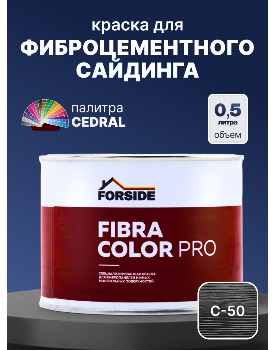 Краска фасадная для фиброцементного сайдинга FORSIDE 0.5л, C-50 Темный минерал, FORSIDE