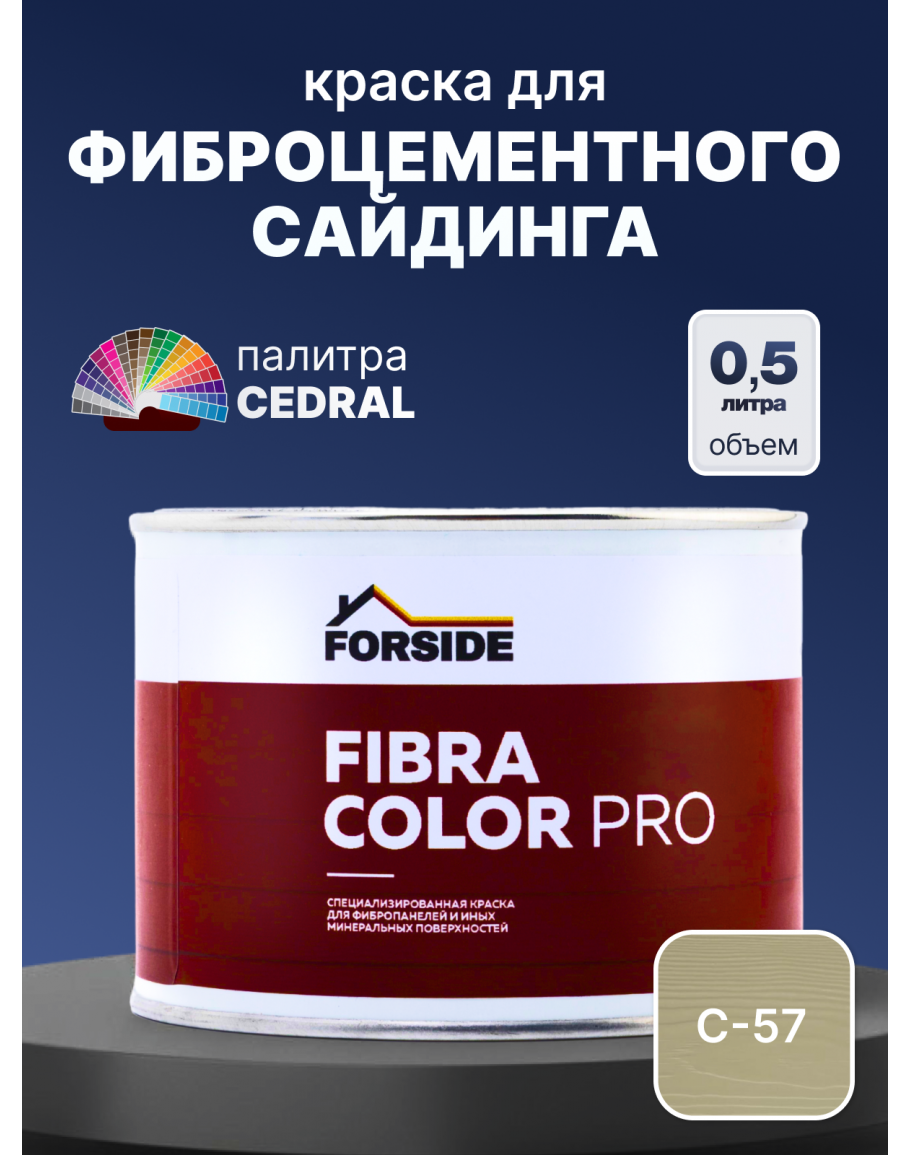 Краска фасадная для фиброцементного сайдинга FORSIDE 0.5л, C-57 Весенний лес, FORSIDE