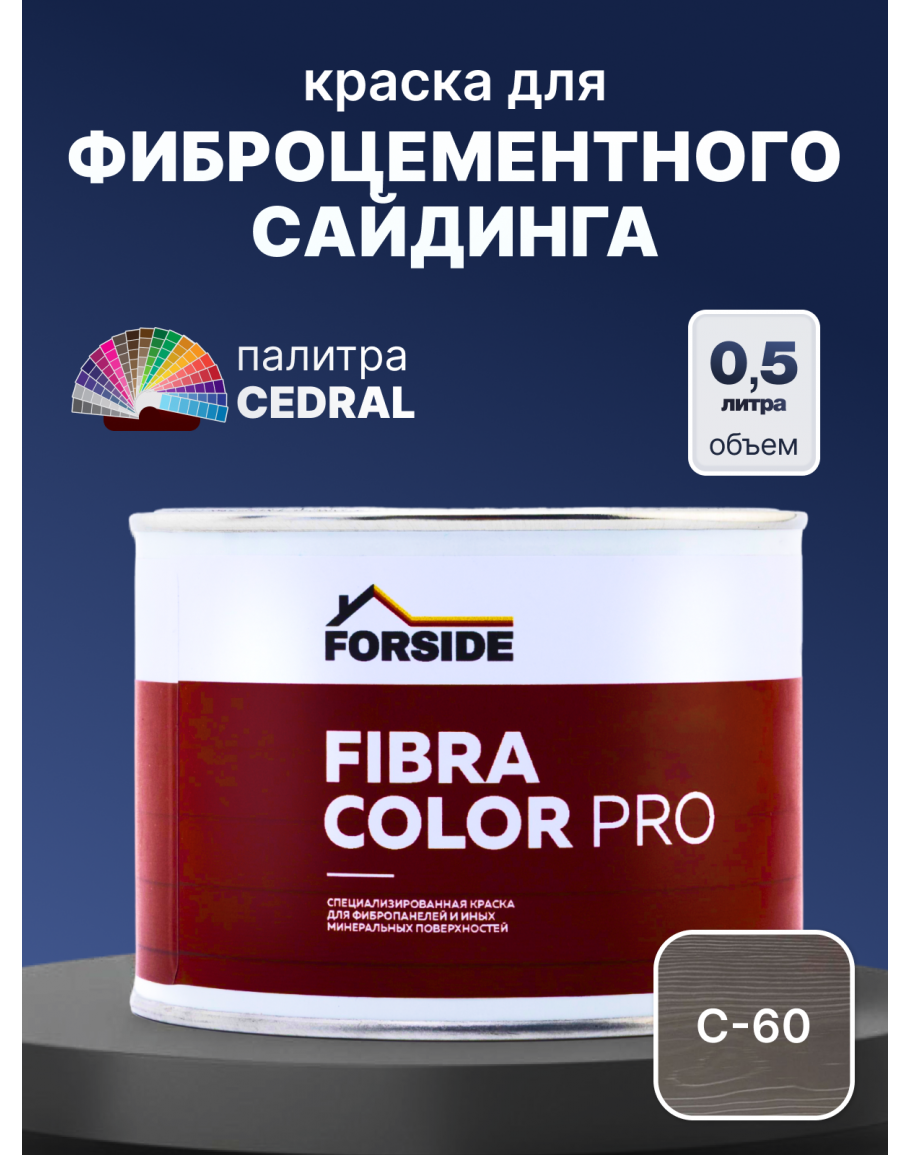 Краска фасадная для фиброцементного сайдинга FORSIDE 0.5л, C-60 Сумеречный лес, FORSIDE