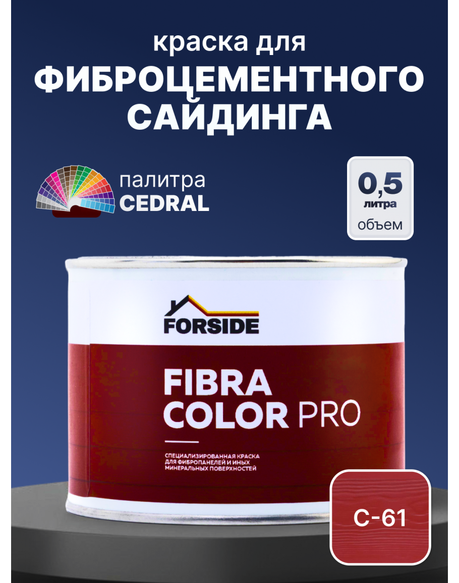 Краска фасадная для фиброцементного сайдинга FORSIDE 0.5л, C-61 Красная земля, FORSIDE