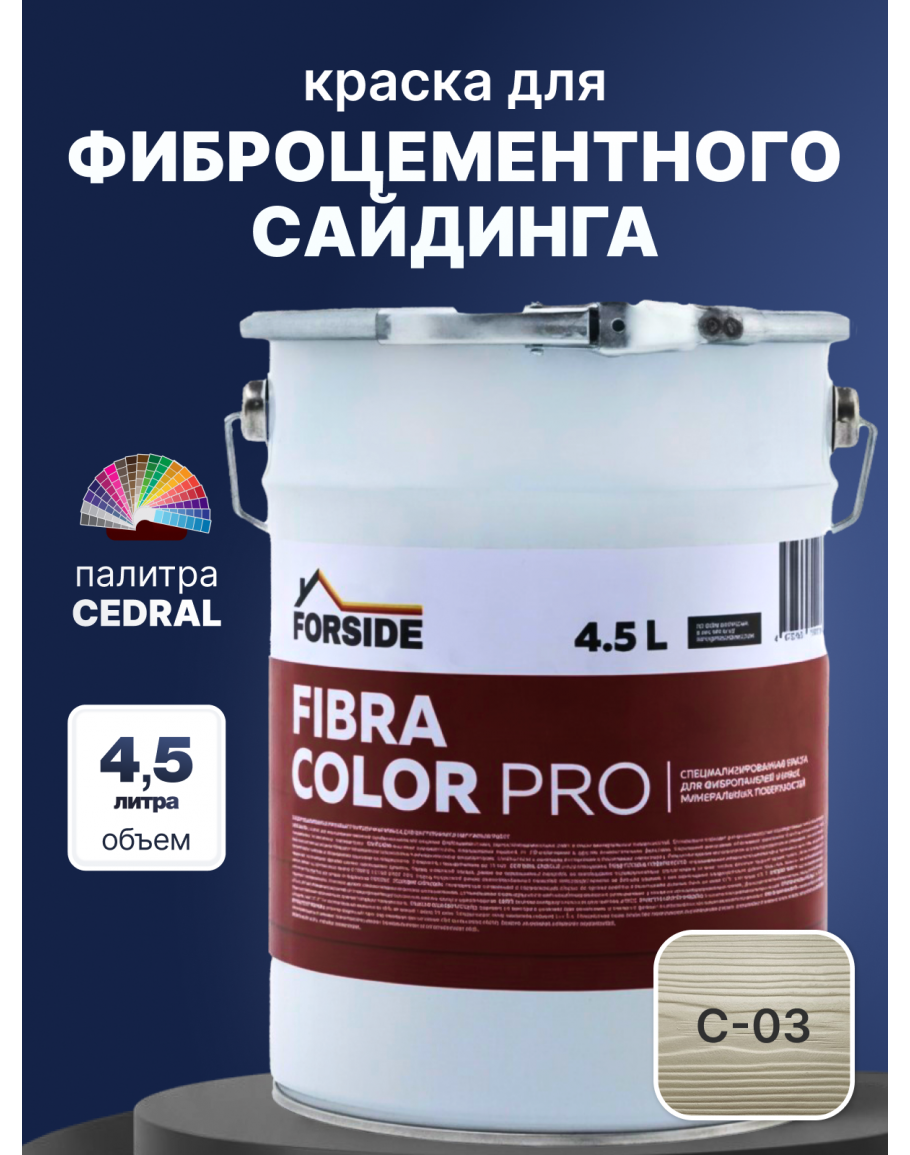 Краска фасадная для фиброцементного сайдинга FORSIDE 4.5л, C-03 Белый песок, FORSIDE