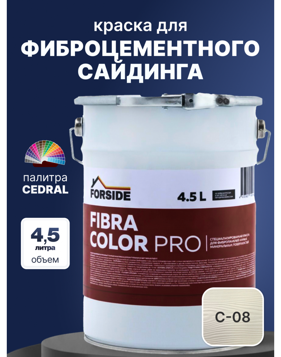 Краска фасадная для фиброцементного сайдинга FORSIDE 4.5л, C-08 Березовая роща, FORSIDE