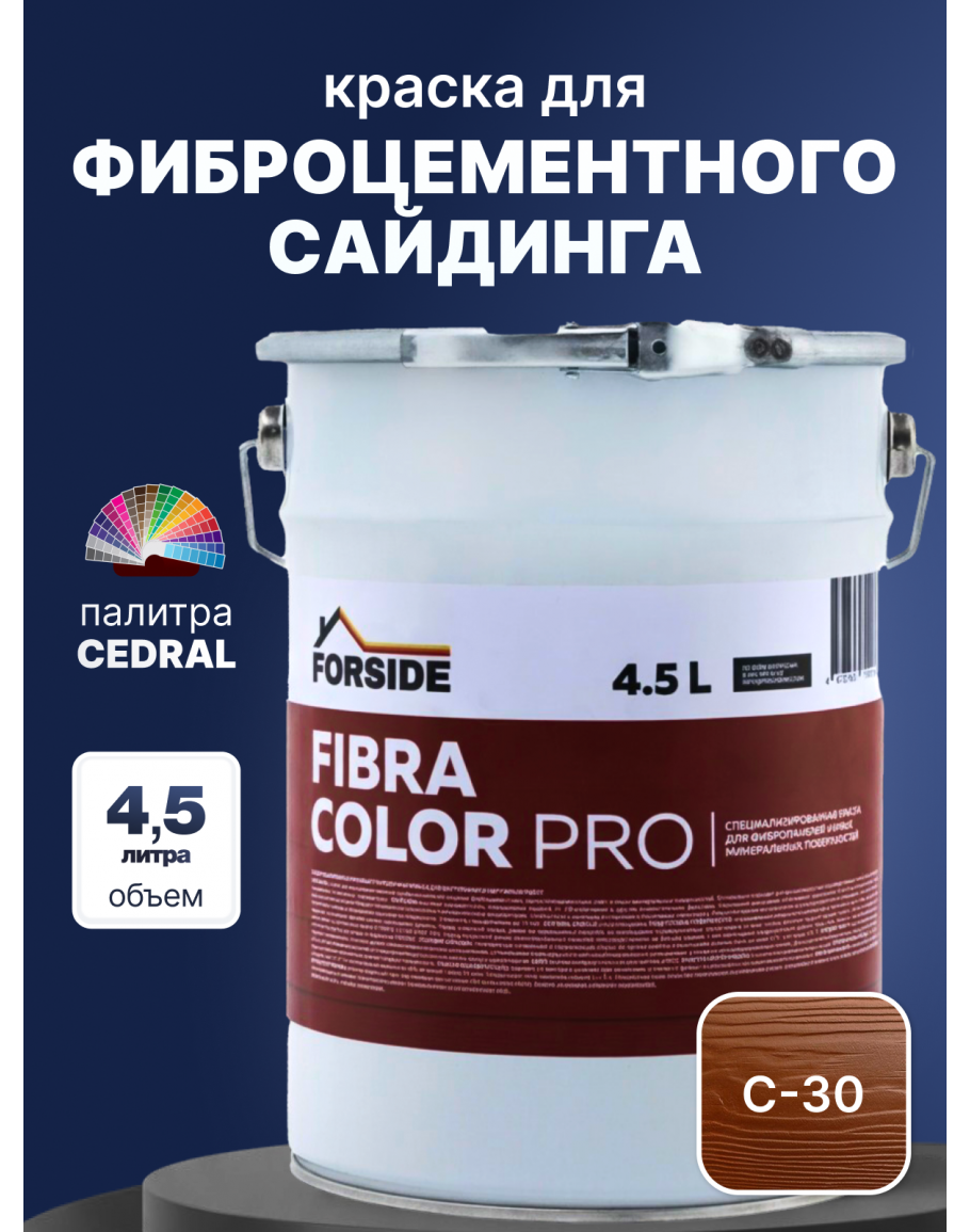 Краска фасадная для фиброцементного сайдинга FORSIDE 4.5л, C-30 Теплая земля, FORSIDE