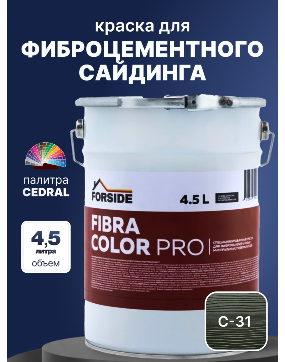 Краска фасадная для фиброцементного сайдинга FORSIDE 4.5л, C-31 Зеленый океан, FORSIDE
