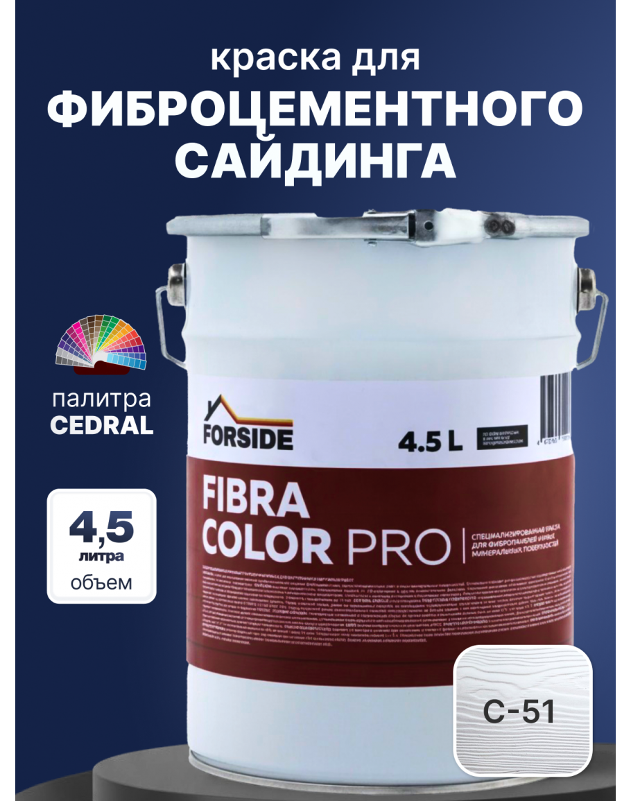 Краска фасадная для фиброцементного сайдинга FORSIDE 4.5л, C-51 Серебристый минерал, FORSIDE