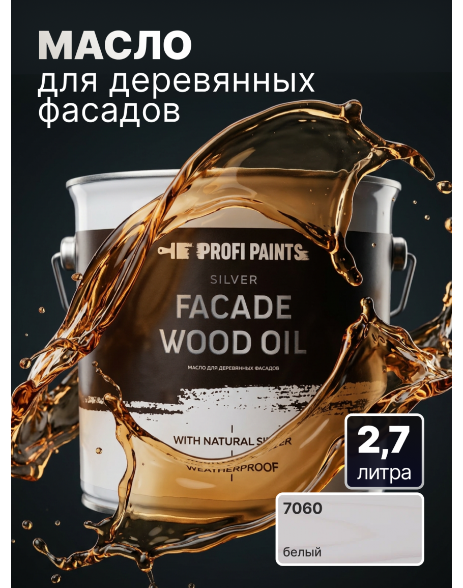 Масло для дерева фасадное атмосферостойкое ProfiPaints Silver Facade Wood Oil 2.7 л, Белый, PROFIPAINTS