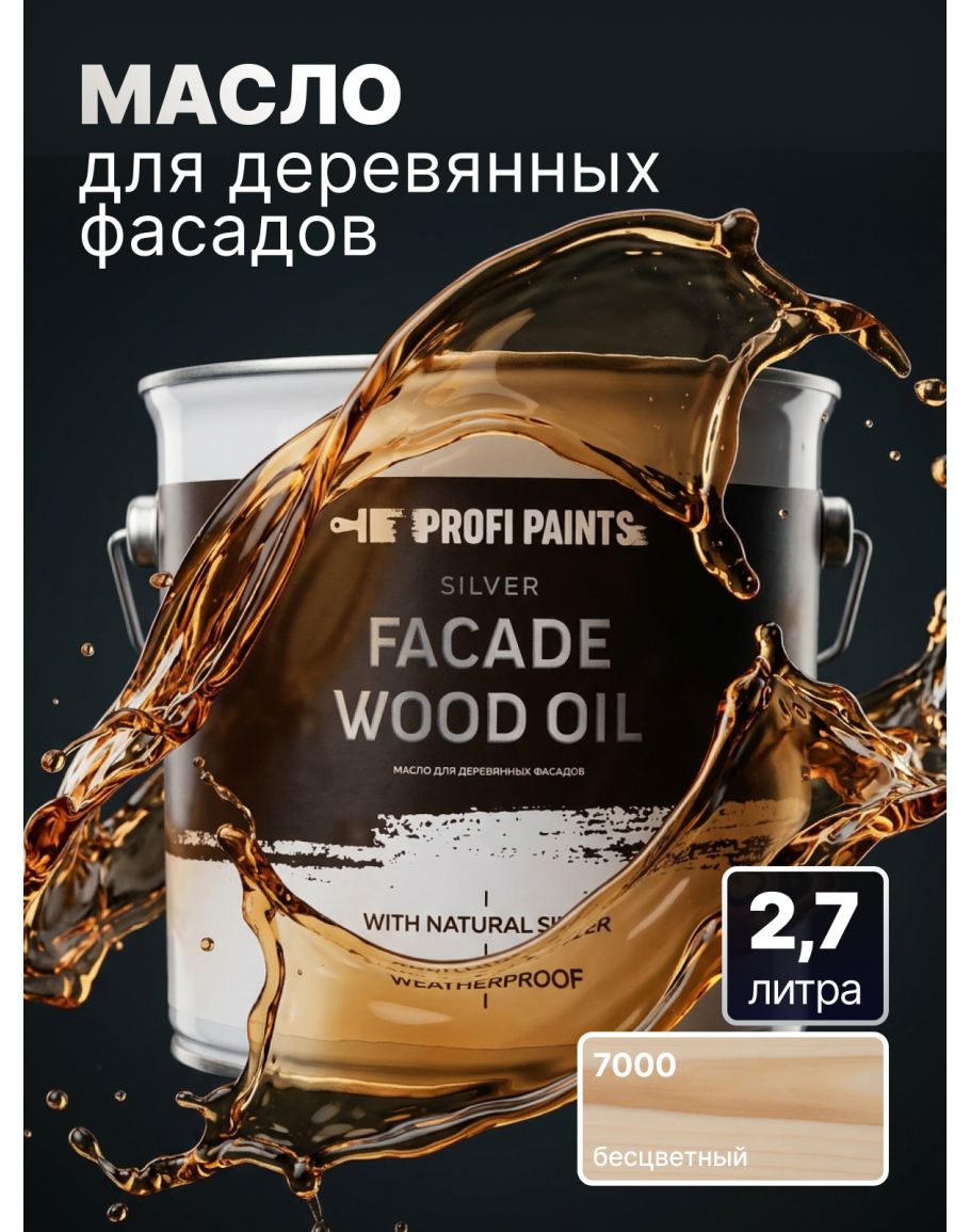 Масло для дерева фасадное атмосферостойкое ProfiPaints Silver Facade Wood Oil 2.7 л, Прозрачный, PROFIPAINTS