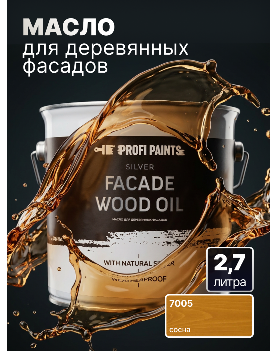 Масло для дерева фасадное атмосферостойкое ProfiPaints Silver Facade Wood Oil 2.7 л, Сосна, PROFIPAINTS