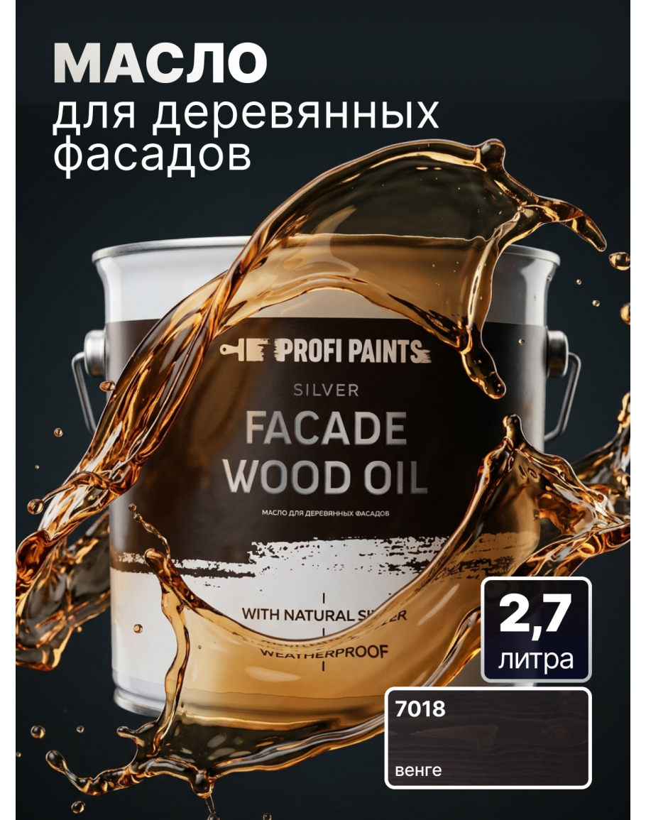 Масло для дерева фасадное атмосферостойкое ProfiPaints Silver Facade Wood Oil 2.7 л, Венге, PROFIPAINTS