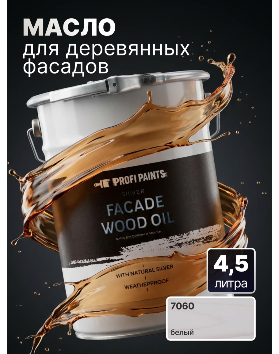 Масло для дерева фасадное атмосферостойкое ProfiPaints Silver Facade Wood Oil 4.5 л, Белый, PROFIPAINTS
