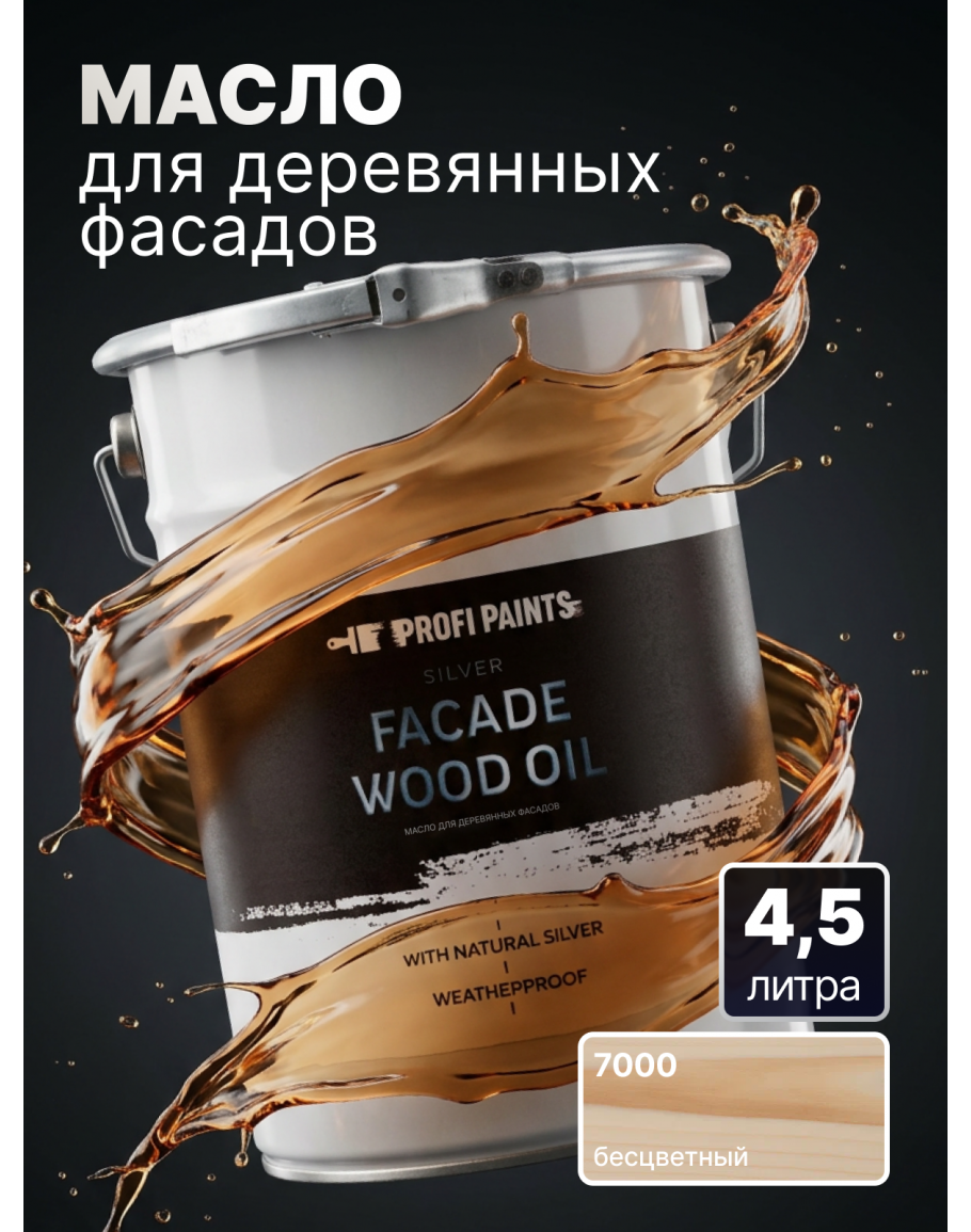 Масло для дерева фасадное атмосферостойкое ProfiPaints Silver Facade Wood Oil 4.5 л, Прозрачный, PROFIPAINTS