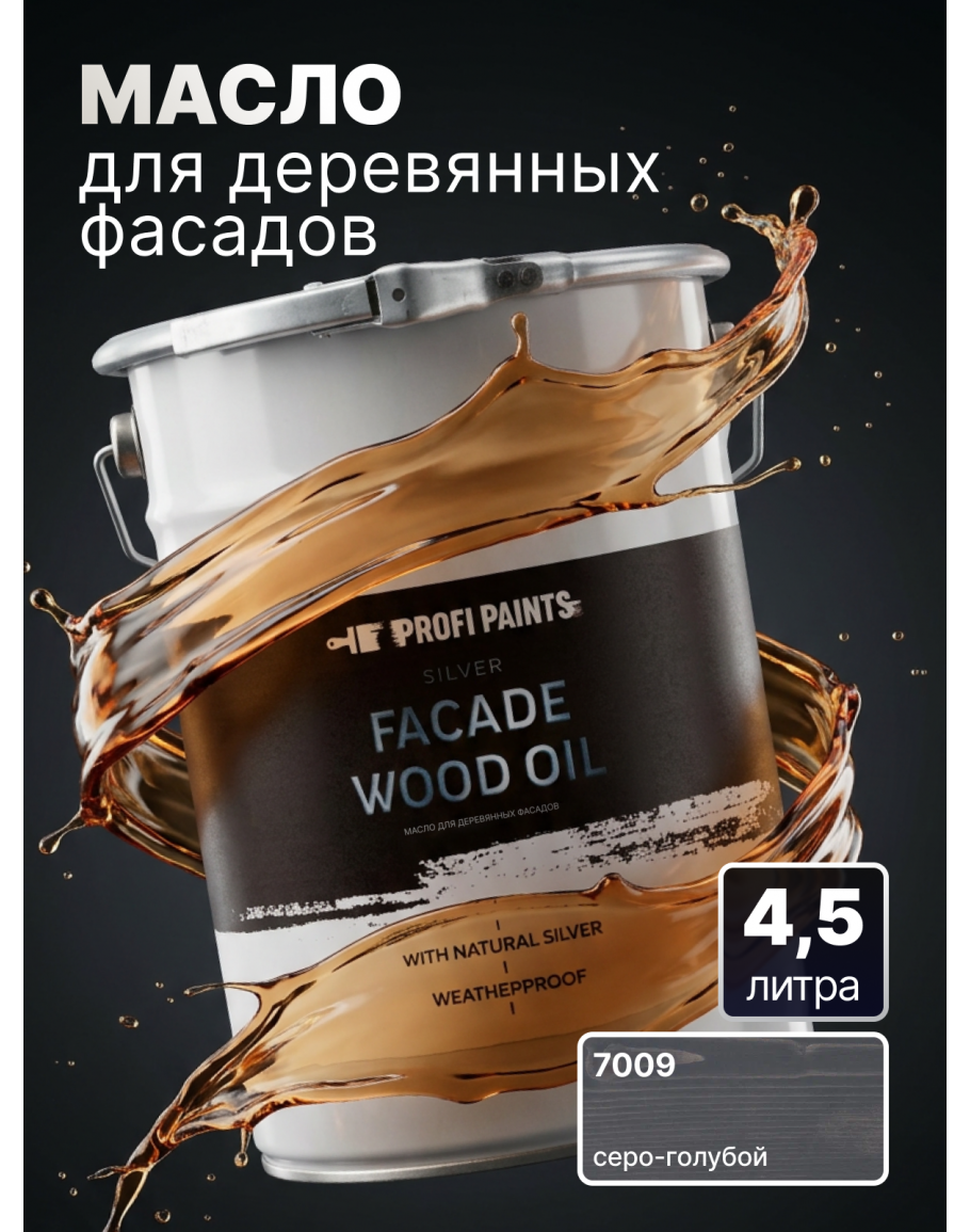 Масло для дерева фасадное атмосферостойкое ProfiPaints Silver Facade Wood Oil 4.5 л, Серо-голубой, PROFIPAINTS
