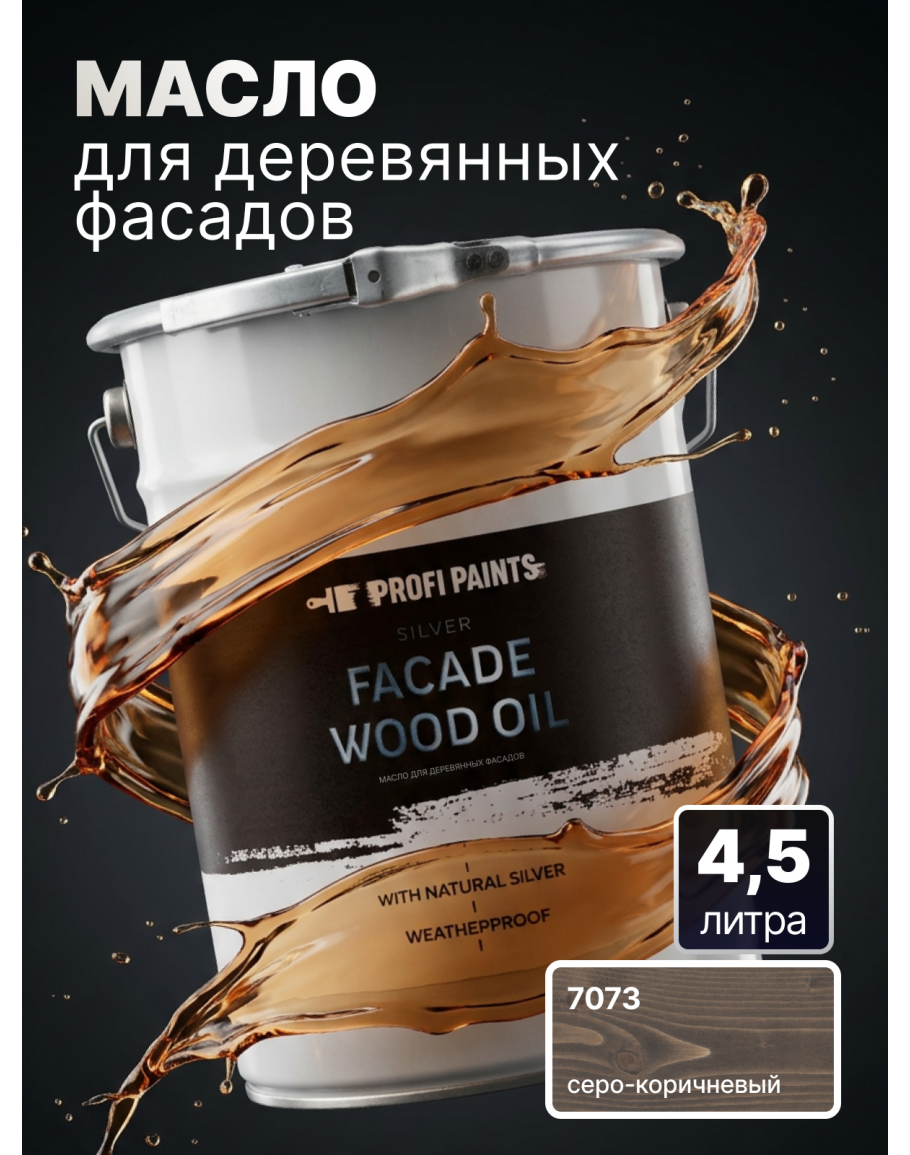 Масло для дерева фасадное атмосферостойкое ProfiPaints Silver Facade Wood Oil 4.5 л, Серо-коричневый, PROFIPAINTS