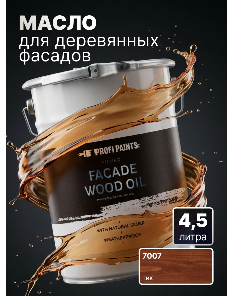 Масло для дерева фасадное атмосферостойкое ProfiPaints Silver Facade Wood Oil 4.5 л, Тик, PROFIPAINTS