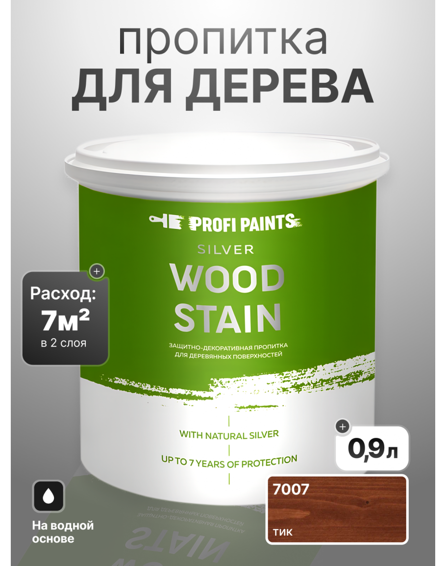 Пропитка для дерева лессирующая с антисептиком без запаха ProfiPaints SILVER WOOD STAIN 0.9л, Тик, купить по выгодной цене 1207.5 в магазине PROFIPAINTS