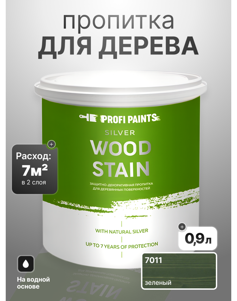Пропитка для дерева лессирующая с антисептиком без запаха ProfiPaints SILVER WOOD STAIN 0.9л, Зелёный, купить по выгодной цене 1207.5 в магазине PROFIPAINTS