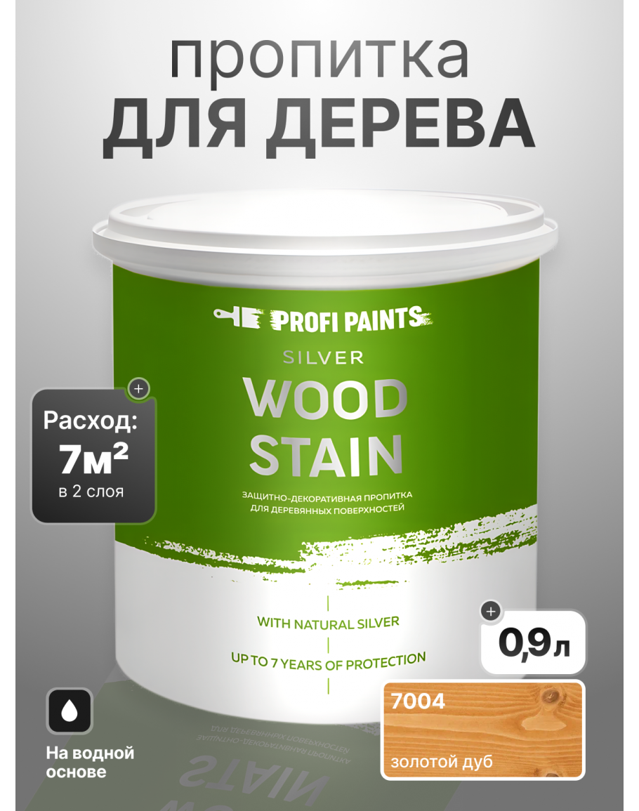 Теги: Пропитка для дерева лессирущая с антисептиком без запаха ProfiPaints SILVER WOOD STAIN 0.9лЗолотой дубSILVER WOOD STAIN