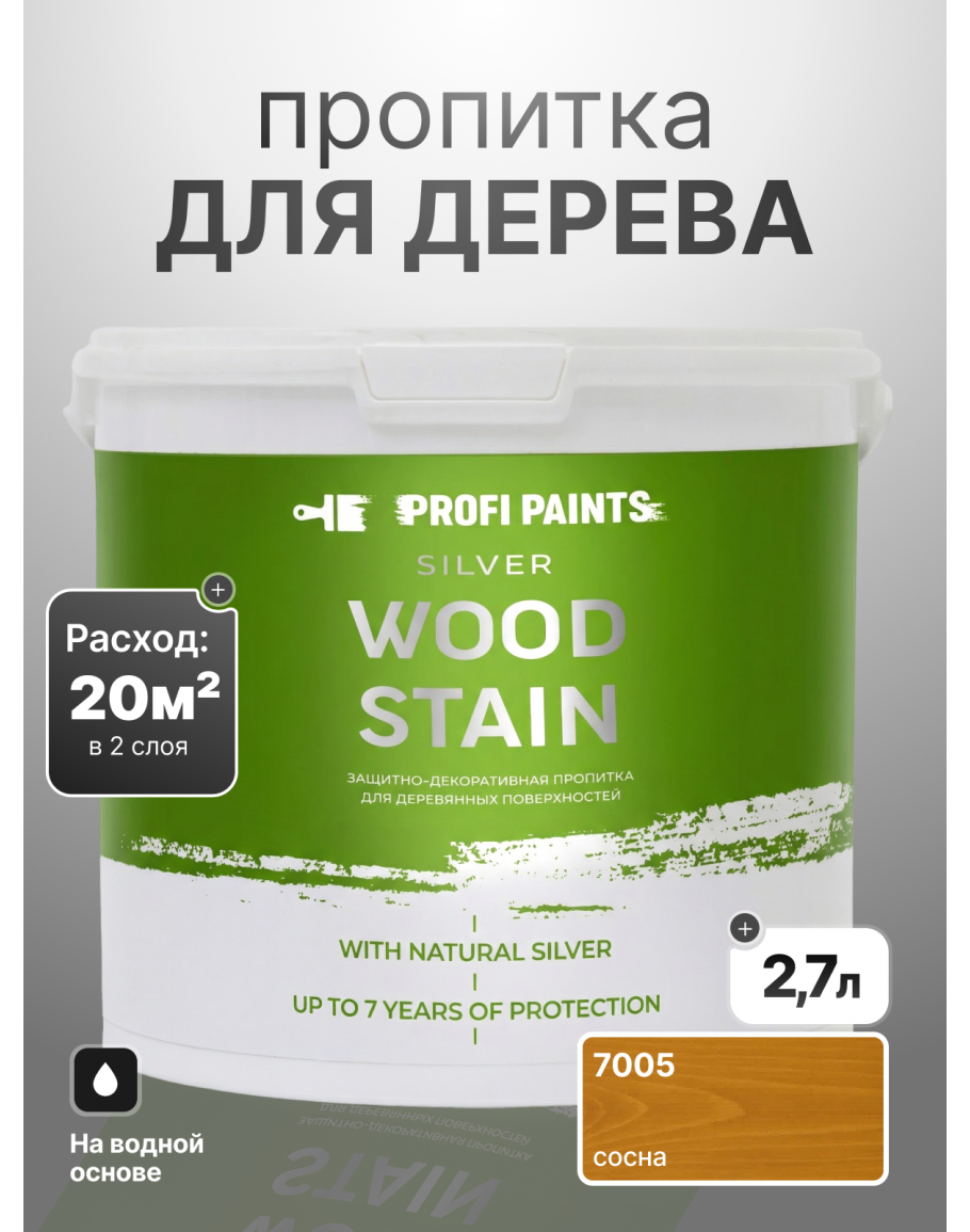 Пропитка для дерева лессирующая с антисептиком без запаха ProfiPaints SILVER WOOD STAIN 2.7л, Сосна, купить по выгодной цене 3450 в магазине PROFIPAINTS