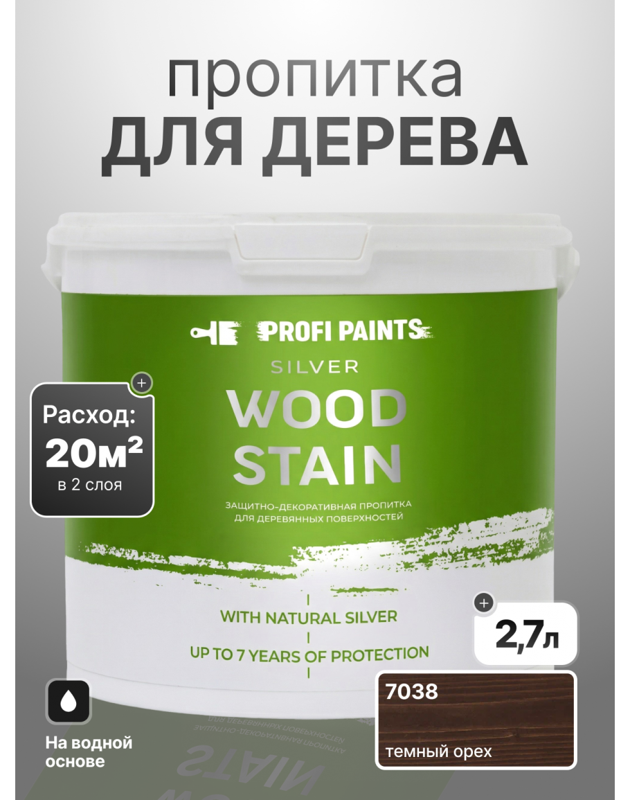 Пропитка для дерева лессирующая с антисептиком без запаха ProfiPaints SILVER WOOD STAIN 2.7л, Темный орех, купить по выгодной цене 3450 в магазине PROFIPAINTS