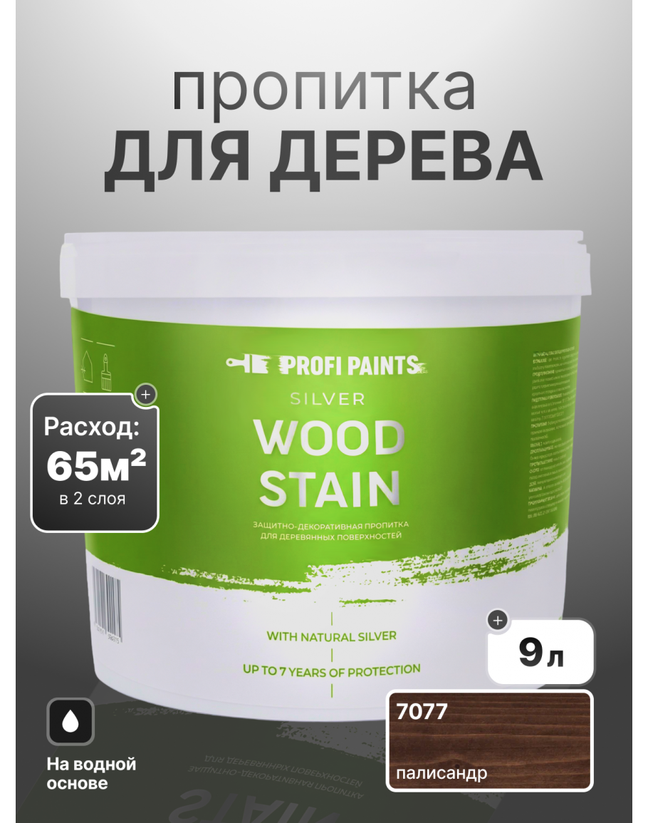 Пропитка для дерева лессирующая с антисептиком без запаха ProfiPaints SILVER WOOD STAIN 9л, Палисандр, купить по выгодной цене 9775 в магазине PROFIPAINTS
