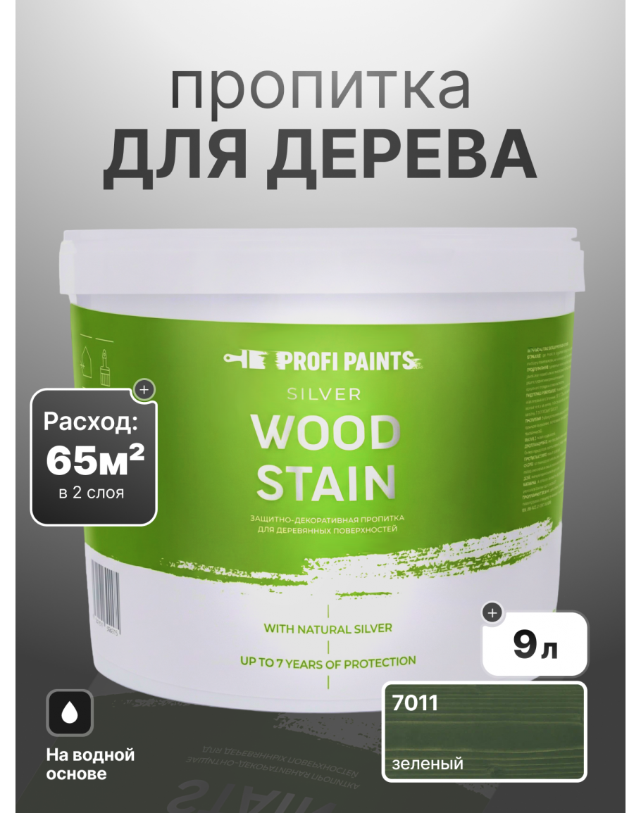 Теги: Пропитка для дерева лессирущая с антисептиком без запаха ProfiPaints SILVER WOOD STAIN 9лЗелёныйSILVER WOOD STAIN