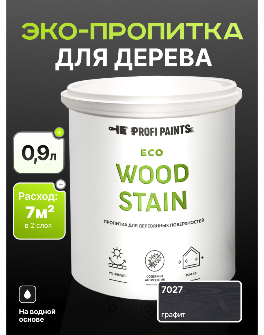 Пропитка для дерева с воском для наружных и внутренних работ ProfiPaints ECO WOOD STAIN 0.9л, Графит, купить по выгодной цене 1094.8 в магазине PROFIPAINTS