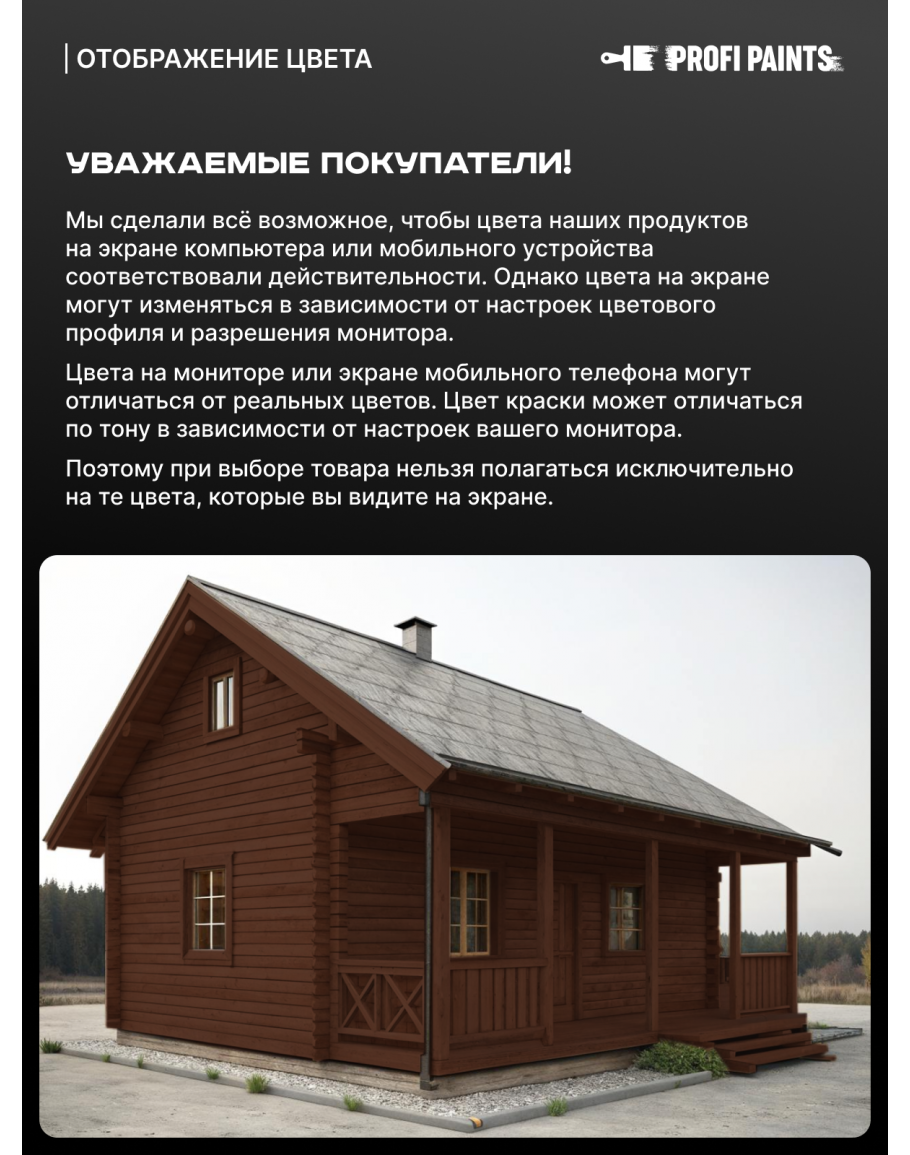 ProfiPaints ECO WOOD STAIN — пропитка с воском для дерева, предназначенная для наружных работ и внутренних работ. Состав обеспечивает защитную обработка дерева от влаги и атмосферных воздействий, снижает водопоглощение древесины, повышает стабильность размеров дерева и уменьшает риск растрескивания. Пропитка глубоко проникает по дереву, формируя износостойкое покрытие с водоотталкивающим эффектом. Подходит для плановой покраска и обновления ранее обработанных поверхностей: забор, забора, заборчик, дверь, деревянная обшивка, элементы деревянного фасада, террасные ограждения, балок, потолка, а также для других наружных работ и внутренних работ по дереву.