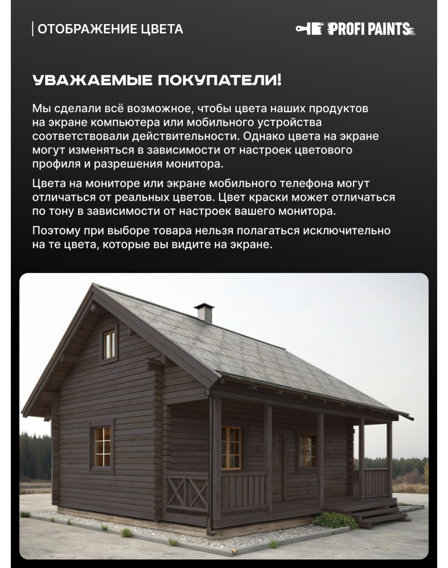 ProfiPaints ECO WOOD STAIN — пропитка с воском для дерева, предназначенная для наружных работ и внутренних работ. Состав обеспечивает защитную обработка дерева от влаги и атмосферных воздействий, снижает водопоглощение древесины, повышает стабильность размеров дерева и уменьшает риск растрескивания. Пропитка глубоко проникает по дереву, формируя износостойкое покрытие с водоотталкивающим эффектом. Подходит для плановой покраска и обновления ранее обработанных поверхностей: забор, забора, заборчик, дверь, деревянная обшивка, элементы деревянного фасада, террасные ограждения, балок, потолка, а также для других наружных работ и внутренних работ по дереву.