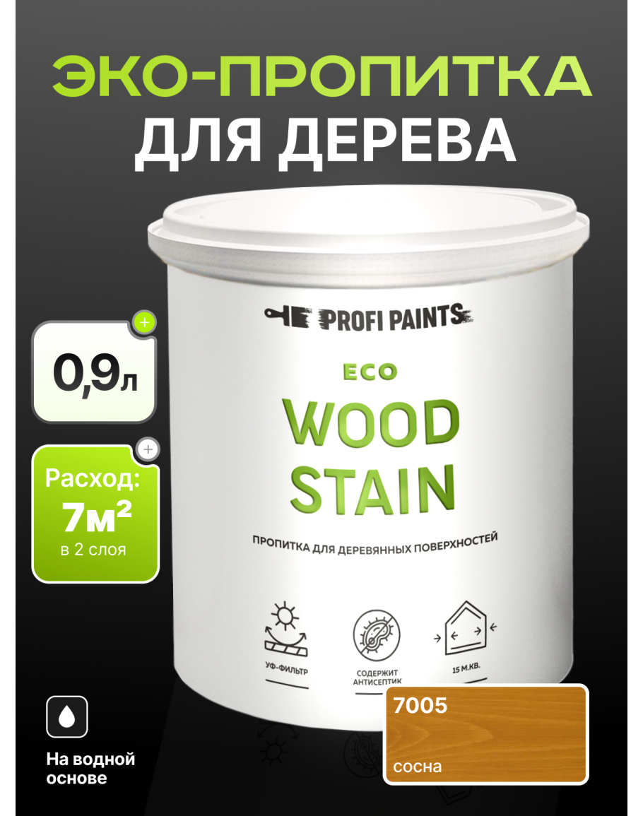 Теги: Пропитка для дерева с воском для наружных и внутренних работ ProfiPaints ECO WOOD STAIN 0.9лСоснаECO WOOD STAIN