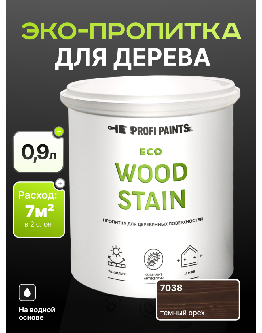 Пропитка для дерева с воском для наружных и внутренних работ ProfiPaints ECO WOOD STAIN 0.9л, Темный орех, купить по выгодной цене 1094.8 в магазине PROFIPAINTS