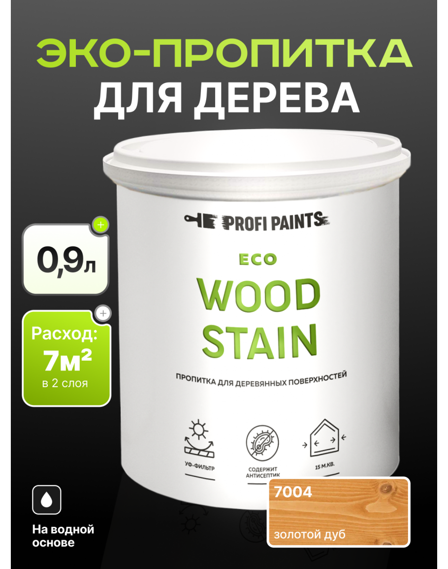 Теги: Пропитка для дерева с воском для наружных и внутренних работ ProfiPaints ECO WOOD STAIN 0.9лЗолотой дубECO WOOD STAIN
