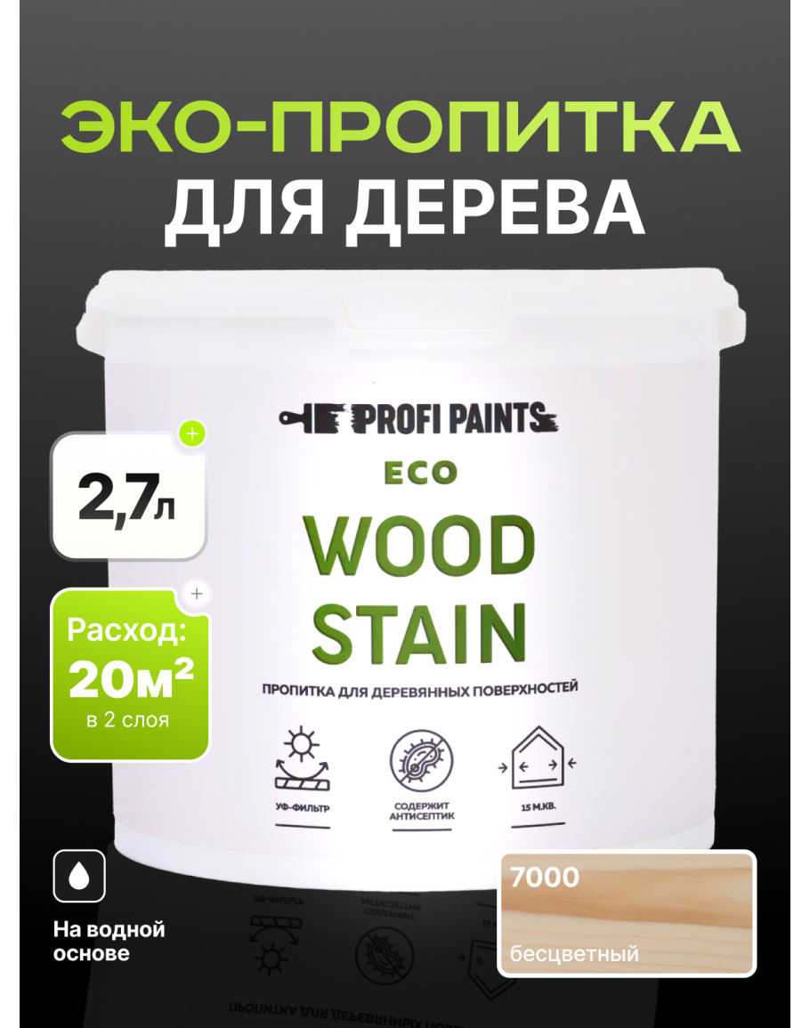 Пропитка для дерева с воском для наружных и внутренних работ ProfiPaints ECO WOOD STAIN 2.7л, Прозрачный, купить по выгодной цене 2740.22 в магазине PROFIPAINTS