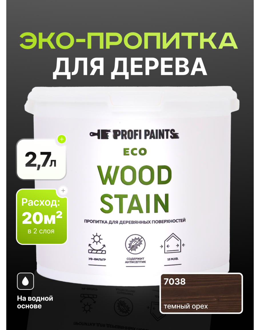 Пропитка для дерева с воском для наружных и внутренних работ ProfiPaints ECO WOOD STAIN 2.7л, Темный орех, купить по выгодной цене 3184.58 в магазине PROFIPAINTS