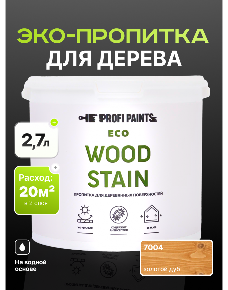 Пропитка для дерева с воском для наружных и внутренних работ ProfiPaints ECO WOOD STAIN 2.7л, Золотой дуб, купить по выгодной цене 3184.58 в магазине PROFIPAINTS