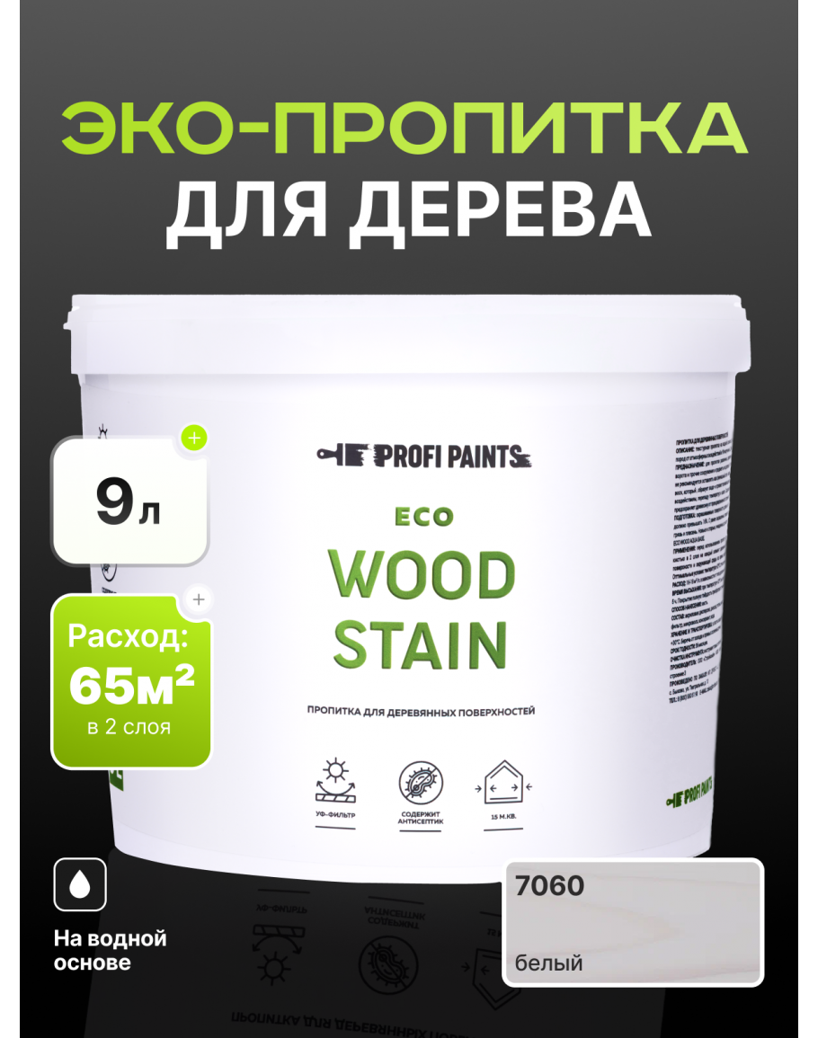 Пропитка для дерева с воском для наружных и внутренних работ ProfiPaints ECO WOOD STAIN 9л, Белый, купить по выгодной цене 7084 в магазине PROFIPAINTS