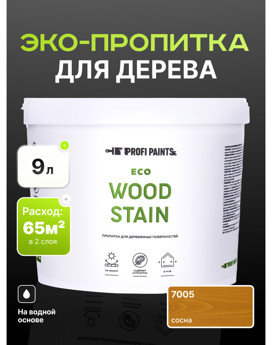 Пропитка для дерева с воском для наружных и внутренних работ ProfiPaints ECO WOOD STAIN 9л, Сосна, купить по выгодной цене 7084 в магазине PROFIPAINTS