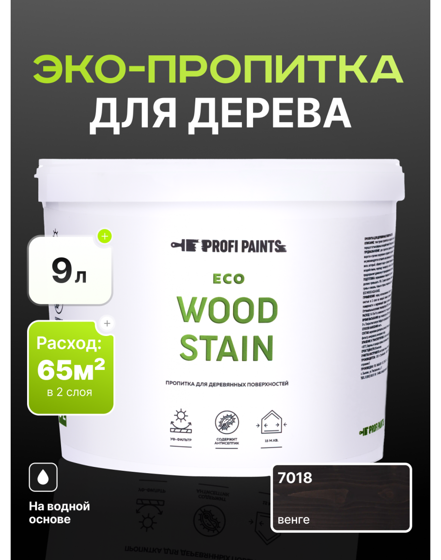 Пропитка для дерева с воском для наружных и внутренних работ ProfiPaints ECO WOOD STAIN 9л, Венге, купить по выгодной цене 7084 в магазине PROFIPAINTS